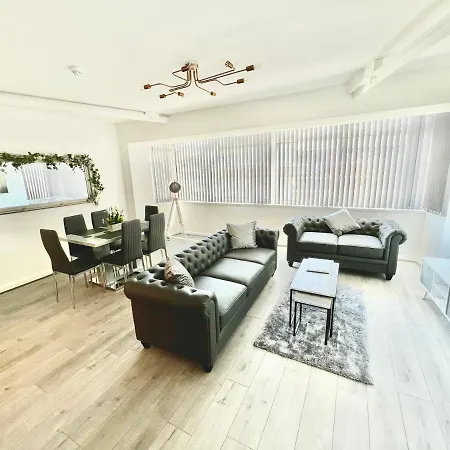 Winter Gardens Owners Suite Blackpool provides a sitting area furnished with a sofa, along with modern amenities like a television. The apartment is equipped with a bathroom that features hairdryers and bath sheets. Furthermore, a walk-in shower and a separate toilet is available.